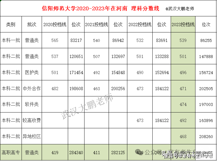 信阳师范大学2020-2023在河南理科投档线