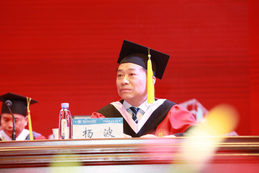 杨伯坚宣读《河南财政金融学院关于表彰2024届优秀毕业生的决定》《关于授予2024届普通全日制本科毕业生学士学位的决定》。