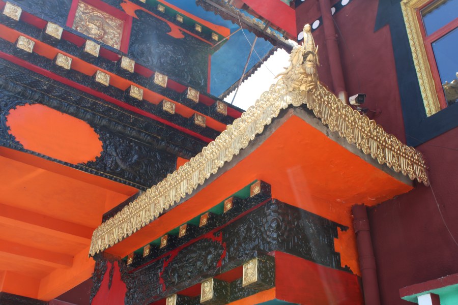寺院的左侧是莲师殿,殿中莲花生大士的像是可以顶礼的,莲师像后是其他祖师,比较熟悉的是宗喀巴大师,然后就是萨迦班智达了。