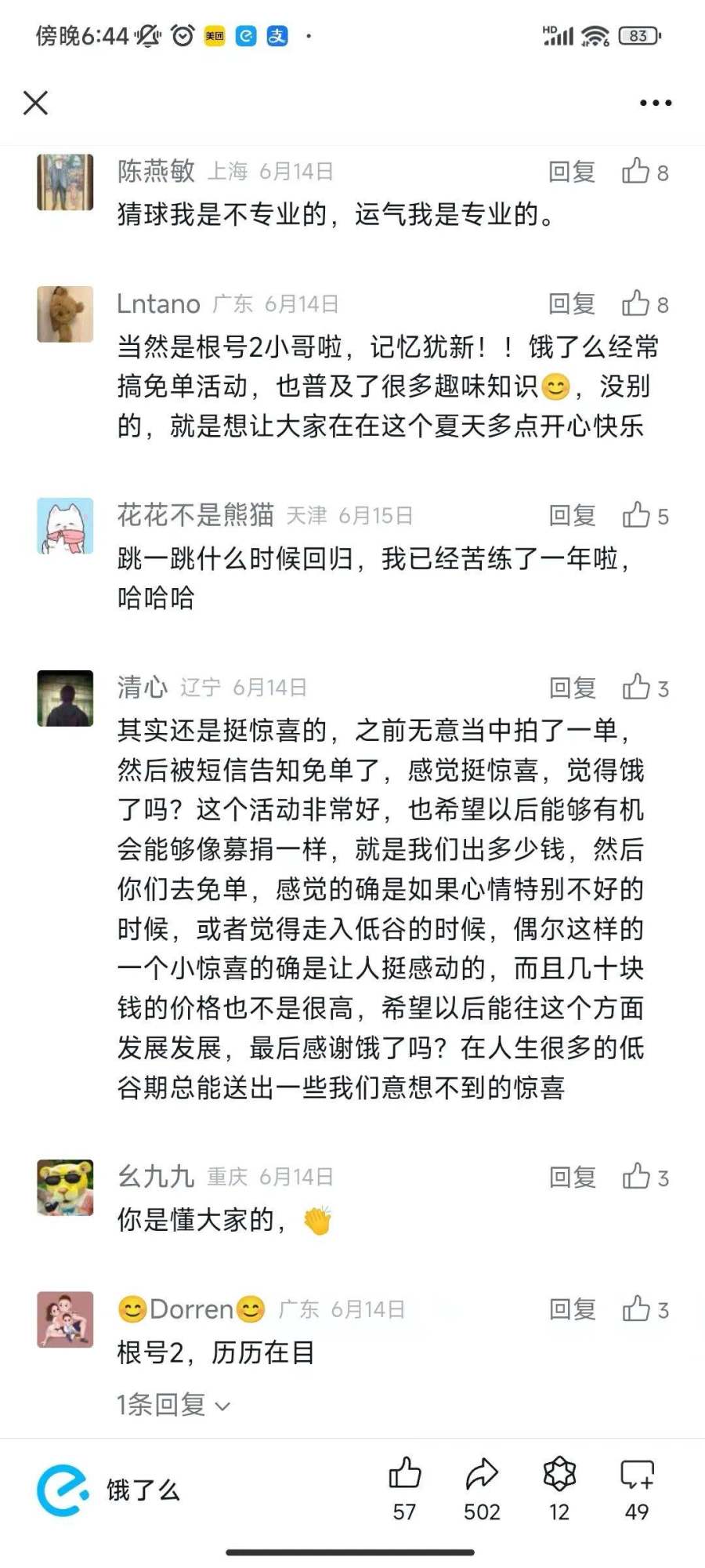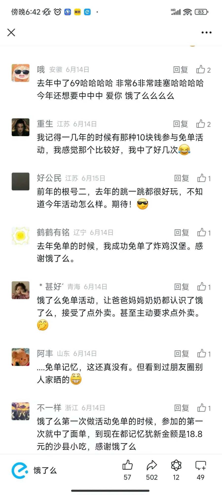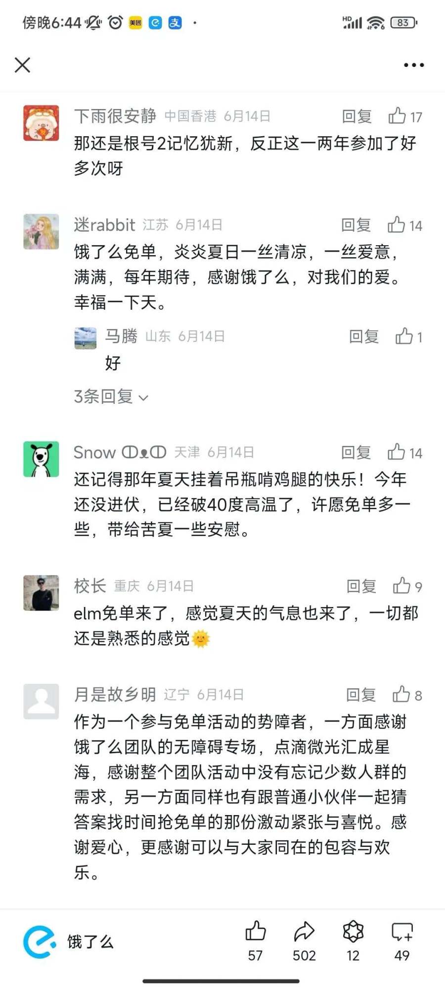 饿了么免单官宣微博下,网友们炸开了锅: