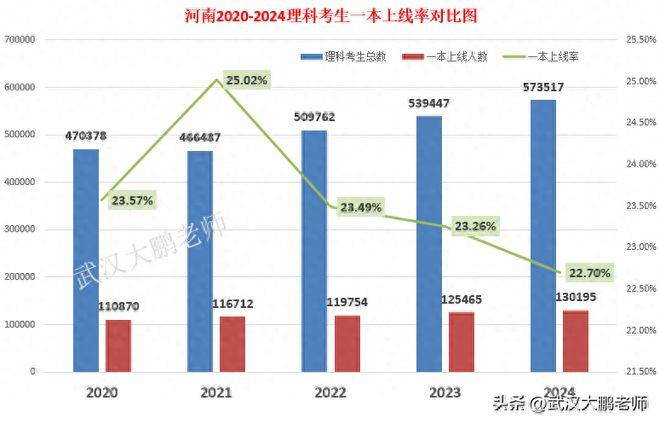 2024年河南一本上线人数13万余人,比2023年增加四千多人,但一本上线率降至22.7%,为近5年新低。