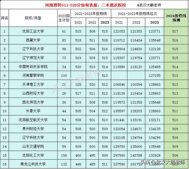 2024年河南理科一本线511分、位次排名13万左右;511分-520分的考生如何选报?能否有一本读?还是去二本批次选?