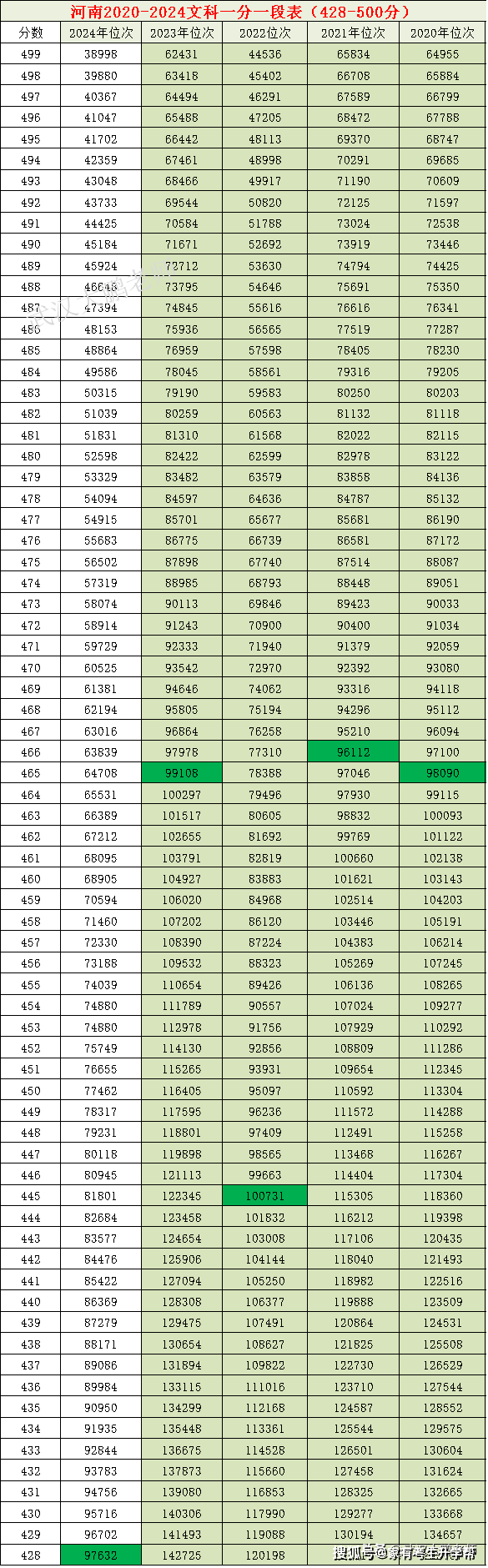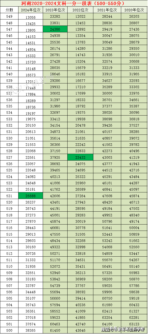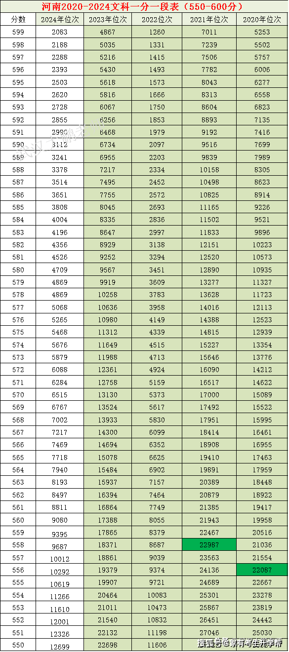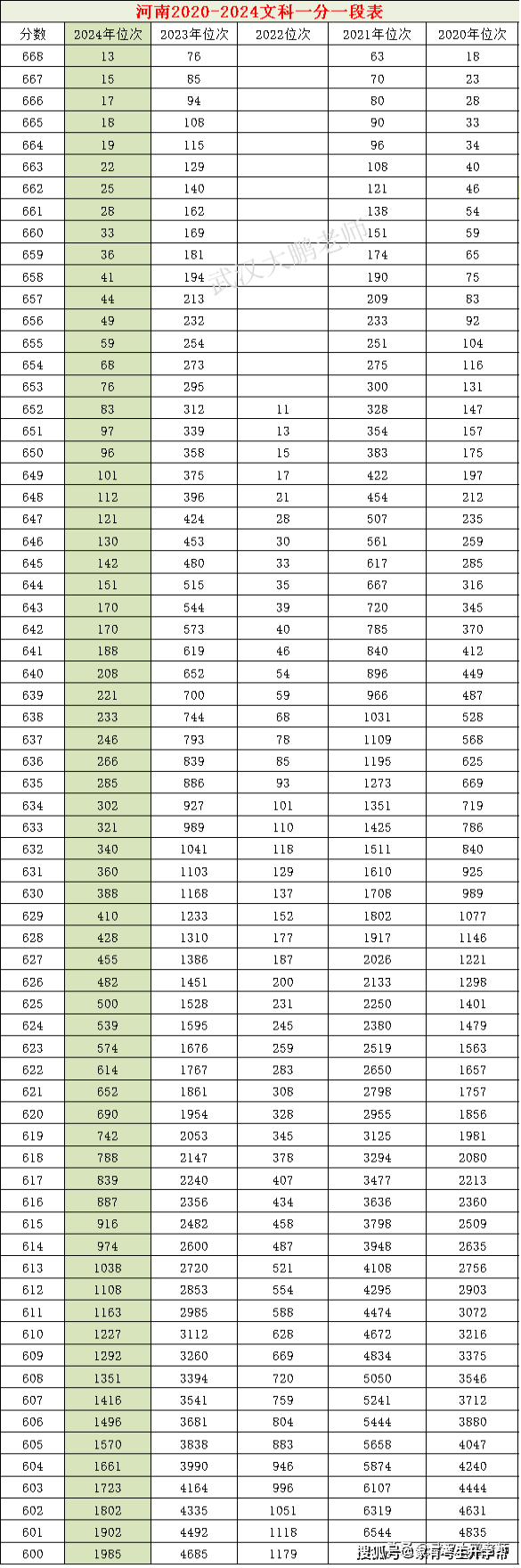 2024河南文科36万,近4年各分数位次对比:668分上清华、北大656