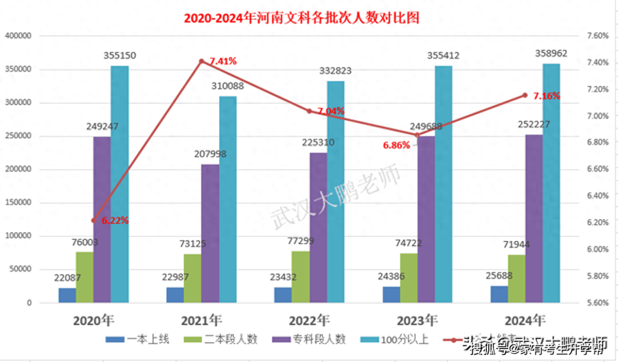 2024年河南36万文科考生,有26万多人只能竞争专科,专科竞争激烈,文科300分以下一般无公办可读。