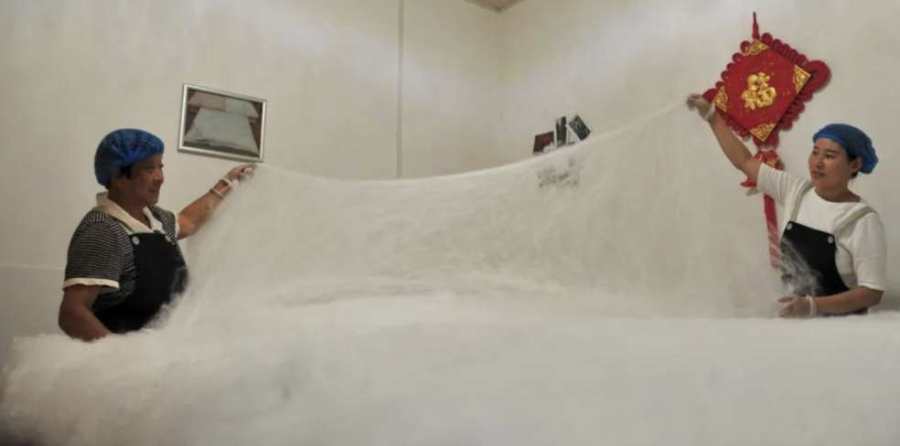 石道乡王楼村村民王梅玲摸着自己养蚕抽丝加工而成的蚕丝被,心里美滋滋的。