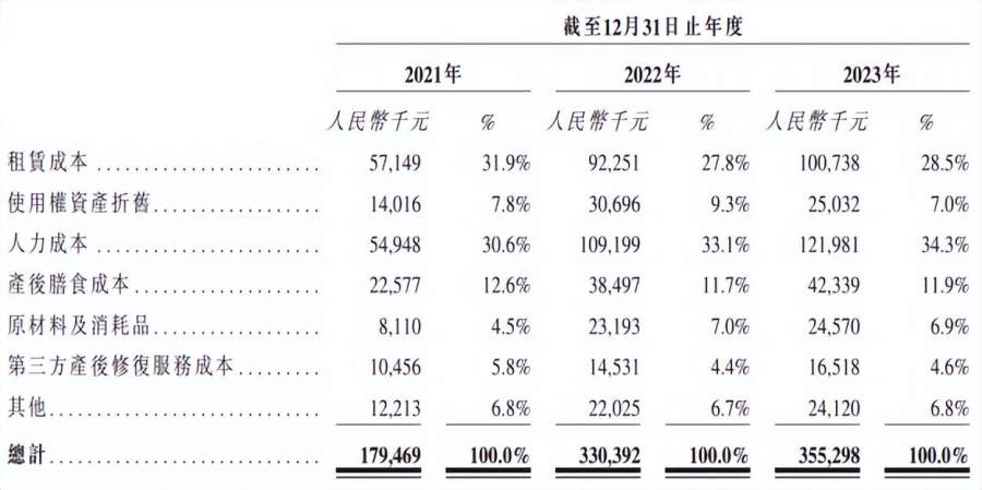 与此同时,圣贝拉需负担合作方向月子中心提供的餐饮、客房服务及其他日常服务。截至同期,该公司的产后膳食成本分别约为2257.7万元、3849.7万元和4233.9万元,分别占销售成本的12.6%、11.7%和11.9%。