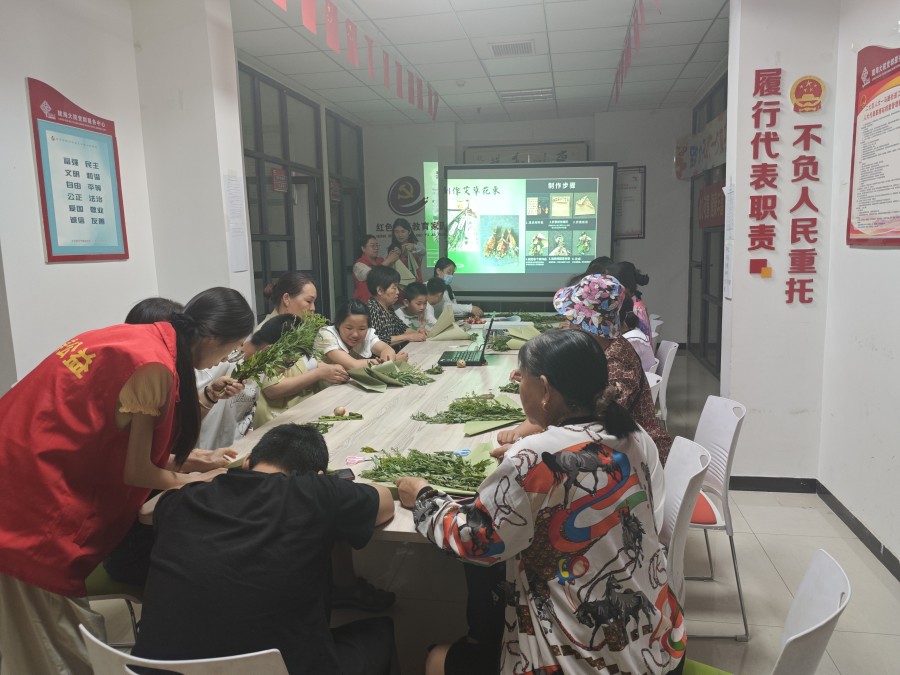 紧接着,一场手工制作艾草花束的活动开始了。孩子们在社工的指导下,用灵巧的双手将艾草编织成一束束精美的花束。这些花束不仅美观大方,更寓意着健康和平安,为即将到来的端午节增添了浓厚的节日氛围。