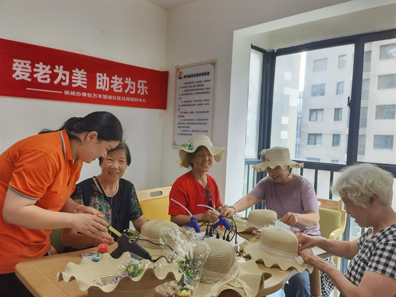 为丰富辖区老年居民的精神文化生活,提升他们的动手能力和生活乐趣,高新区枫杨办事处万丰慧城社区携手万丰慧城社区日间照料中心于7月12日共同举办了一场温馨而富有创意的“干花帽子手工制作活动”。