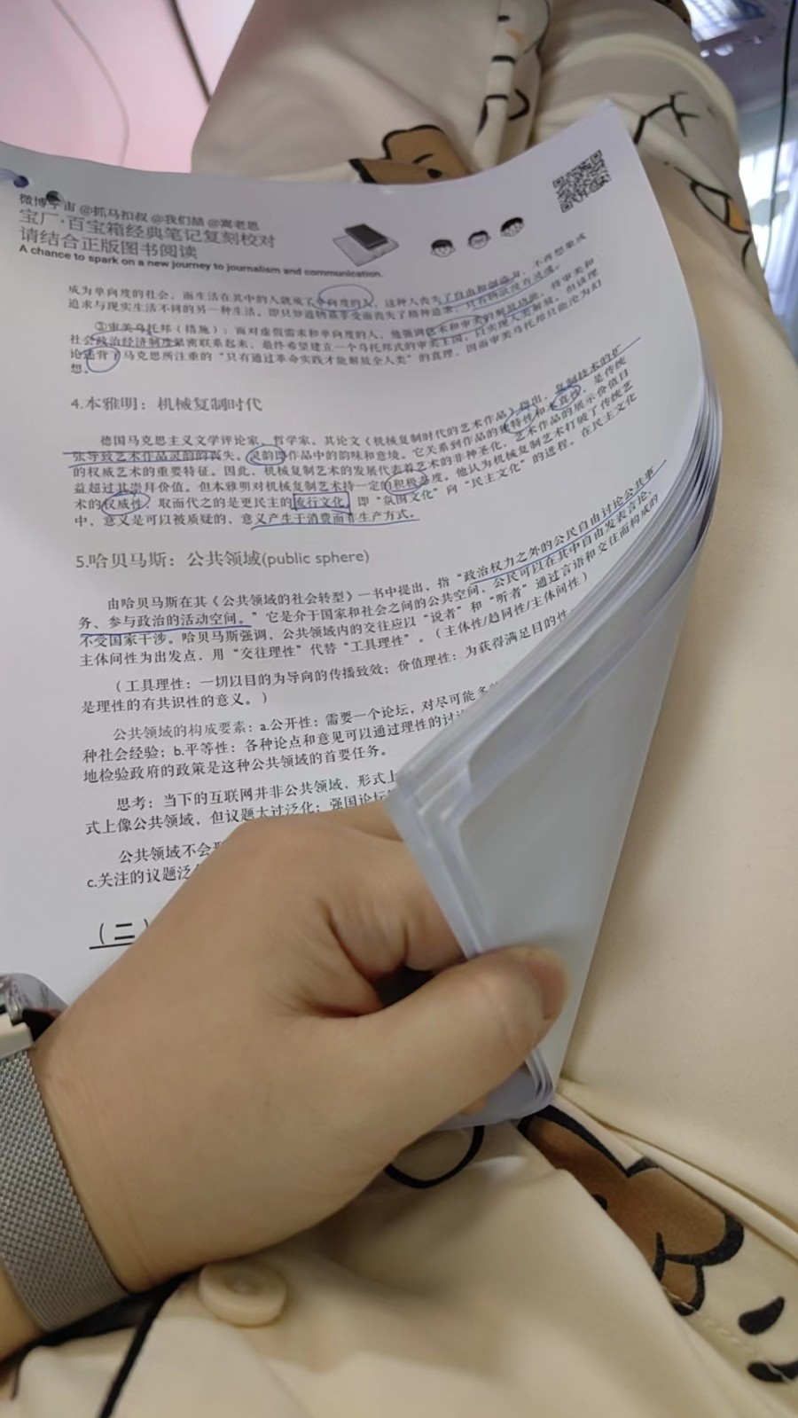 “我选择考新传绝非一时兴起,而是热爱使然。”本科四年对新闻的学习与浸染,让小羊坚定了在新传领域深耕的决心。课堂上老师讲的新闻案例,播放的新闻纪录片以及亲身经历的新闻采访活动都让她感受到了新闻工作者的伟大。她也想成为一名“有力量”的新闻工作者,考新传成为她进入到喜欢领域耕耘的唯一道路。