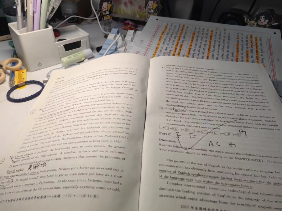 二战则是因为考试的时候恰好遇上了流感,拖着昏沉的脑袋和发热的身体答完了考研英语,不出意外考了49的低分,把自己拉下了马,没考上也实属意料之中。但她从未放弃,在分析失败的原因后,向喜会特地将复习的重点倾斜到英语上,疯狂背单词和做真题是她复习英语的绝招。