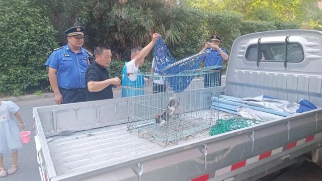 在行动中,执法人员和社区网格员携带捕犬网、防咬手套等捕犬工具和狗笼,在辖区主次街道、公园广场、居民小区、校园周边等区域加大巡查频次,对巡查过程中发现的无证养犬、溜犬不牵绳、犬便未清理及犬吠扰民等不文明行为及时制止并劝说纠正。同时,通过面对面宣传及发放文明养犬等宣传资料的形式,积极向居民群众宣传文明养犬法律法规和犬只预防接种知识,温馨提醒居民群众要为犬只办理养犬登记证、遛狗要拴绳牵引,主动避让行人,防止犬吠扰民、犬只伤人等情况发生,还特别提醒居民群众尤其是老人、孩子,外出时尽量远离陌生犬只和大型烈性犬只。