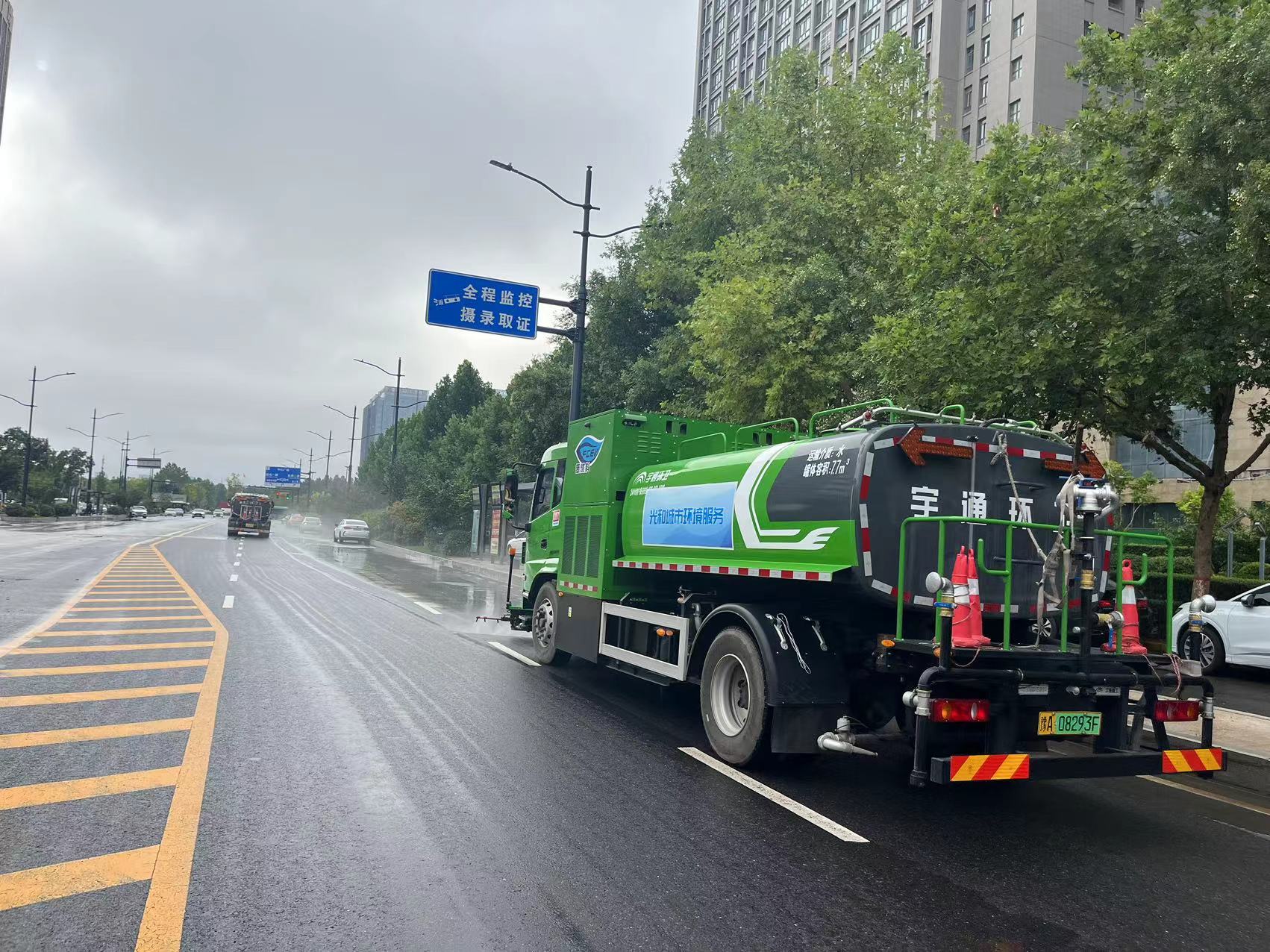 雨后,城市“恢复键”即刻启动。经开区环卫绿化工人们手持扫把和高压水枪,对道路、人行道、公园、绿化带等区域全面清洗,采用“分区域”“先主后次”“机械 + 人工”作业模式,覆盖城市主干道、繁华商业区、背街小巷和居民小区,实现清洁工作无死角。截至目前,共出动环卫绿化工人 3000 余人次,各类环卫车辆 260 余台次,清理积水、淤泥 380 余处,收集落叶、杂物等垃圾约 119 方,清理卫生死角 46 处,擦拭果皮箱、工具箱等城市家具约 1128 个,清理断枝 42 处,城市环境迅速恢复。