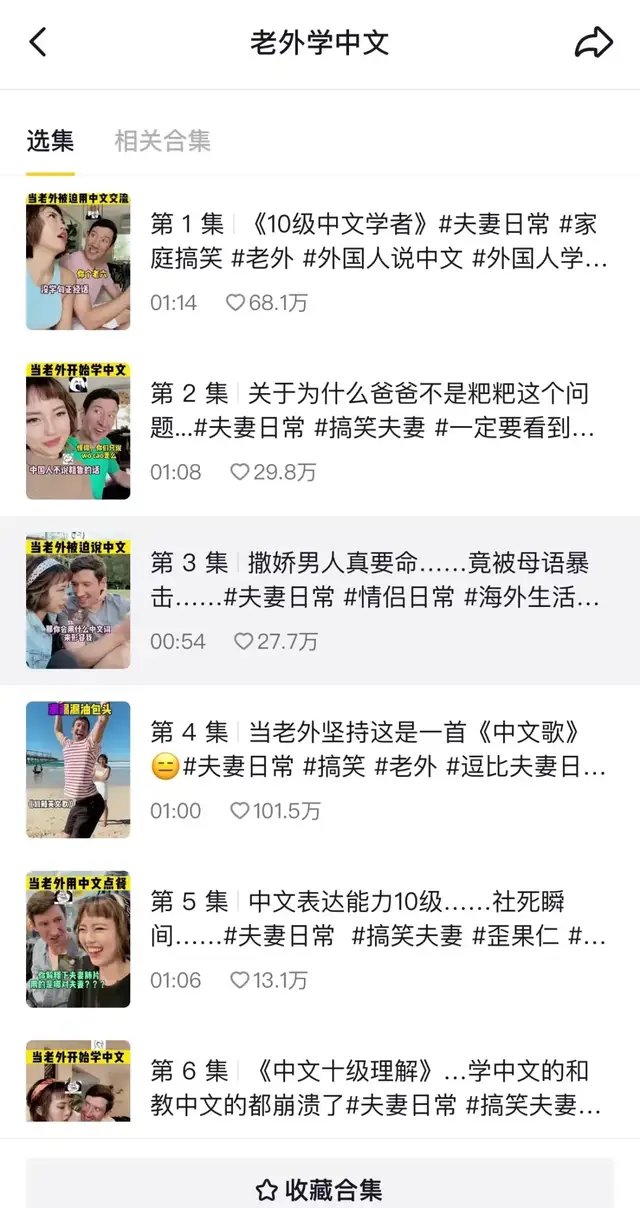 就算是不特意呈现这部分内容的博主,也会被网友要求进行反向文化输出。例如@TJandClaire近期发布的视频中,男生大秀中文网络流行语。