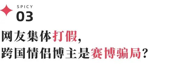 跨国情侣博主虽然利用信息差造梦,但“难背调”也让其成为网友的打假重灾区。当越来越多跨国情侣博主出现,网友也不再只沉浸在被制造的美好幻梦中,开始主动祛魅。