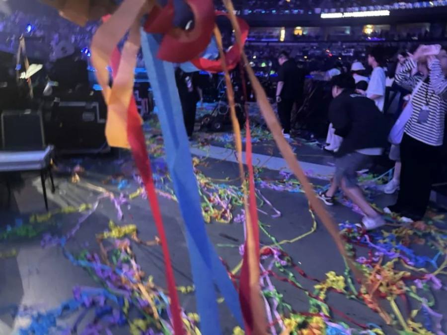 在漫天散落的彩带中,周深演唱的《璀璨冒险人》落下了今晚盛典的最后一个音符。他弯腰说着:向前冲吧!谢谢每一个现在还在听我唱歌的人。不舍的氛围,随即在整个场馆蔓延开来。