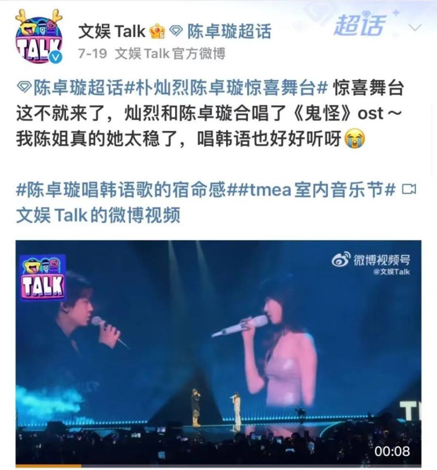 记忆拉回19号晚上,陈卓璇和朴灿烈的惊喜合作舞台《stay with me》鬼怪氛围感拉满。#陈卓璇音译韩语歌词##陈卓璇鬼怪舞台宿命感拉满#等话题词热议不断。“陈卓璇韩语歌也唱的有模有样呀,真是不错子”彼时,听完《stay with me》的媒体同行和kk说道。