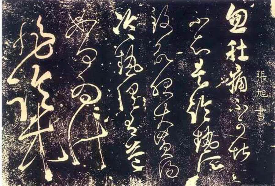 笔画连绵、字势豪放的张旭开创了狂草之风。他的书法和李白的诗、裴旻剑舞并称三绝。妙笔生花,如峰头云烟,气象万千,变幻莫测;似九曲黄河,一泻千里,气势磅礴。代表了盛唐气象。张旭重法度而欲超越法度,重意象而又大象无形,重字形好似点画狼藉。熊秉明在《中国书法理论体系》一书中曾说过这样一段话:“张旭是中国书书法史上一个极重要的人物。他创造的狂草向自由表现方向发展的一个极限,若更自由,文字将不可辨读,书法也就成了抽象点泼的绘画了。”可见他对张旭的推崇!