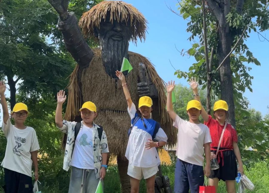 同盟古镇是一个集民俗非遗、特色美食、文化创意为一体的北方烟火小镇、中原文化发生地,徜徉古镇,青砖乌瓦的明清时期建筑给人以沉浸式的文化体验。小朋友们在古镇下车并分组后,4组志愿者便带领各自的队伍分别前往手工作坊、蛙鸣湖、小吃街等地方进行打卡。在手工作坊,小朋友们在景区讲解员的解说下,了解了豆腐、腐竹和醋的工艺流程,在蛙鸣湖,在这里小朋们看到了好运锦鲤,投喂了白鸽;在小吃街,小朋友们品尝了手工酸奶、麻花等美食;除此之外,小朋友们还看到了许多非物质文化遗产,如扎染、漆扇....游玩结束后,孩子们到达指定地点享受美味的午餐,一上午的快乐有了丰盛午餐的加持,小小的身体再次充满能量,小朋友们觉得无比满足,接着,各小组开始讨论并确定各自队伍的口号和名称以及视频制作并踏上归途。