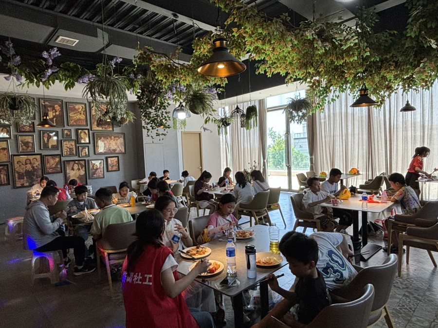 7月20日早上八点,24位小朋友来到和寨村村委会集合,在老师、社工和志愿者的带领下,小朋友们排着整齐的队伍,乘坐大巴车,深入袁家村·同盟古镇开展为期一天的古镇探秘活动。