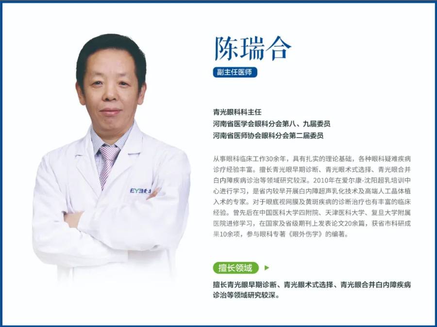 河南大学附属爱尔眼科医院青光眼科科主任陈瑞合提醒:青光眼不只是老年人的“专利”,任何年龄段都有发病风险。40岁以上、有青光眼家族史、糖尿病、高血压、高度近视等高危人群应定期做眼科检查。