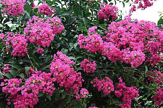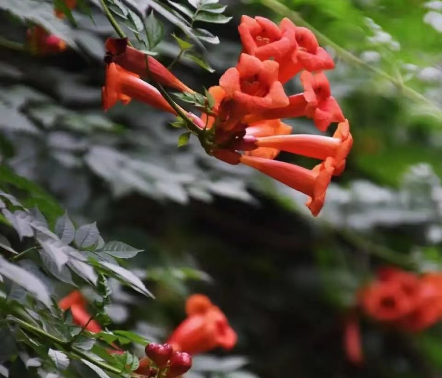 夏有约花不误,凌霄、紫薇、木槿灿然怒放。红、紫、粉、橙,绚丽夺目,又芳香怡人。