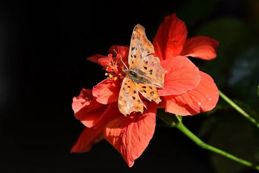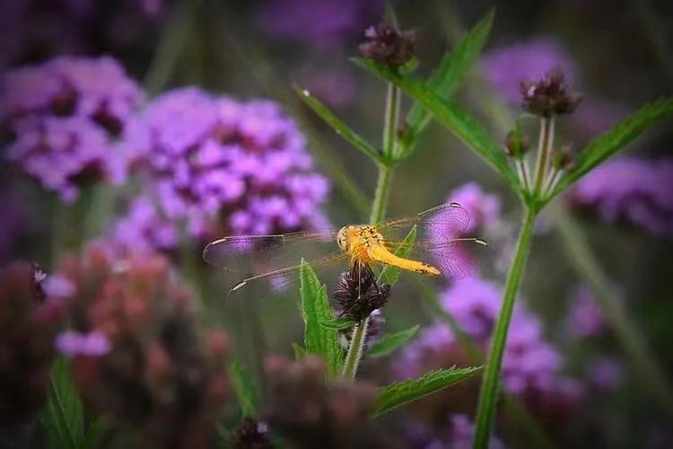 远处传来一声接一声的蝉鸣,一只蝴蝶氤氲在花朵下,绵柔的云朵悠闲地漂浮着,仿佛置身于酷暑之外。