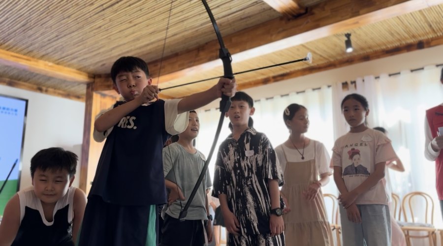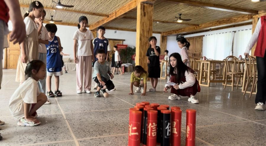 本期夏令营活动还设计了礼仪学习和传统民间游戏体验环节。为培养儿童良好的文明礼仪习惯,提高儿童的综合素养,罗莉老师从问候礼、用餐礼等方面讲解了礼仪知识,并进行了分组实践练习,让小朋友们于实践中充分认识到哪些是不文明的行为和正确做法。传统的民间游戏是民族文化的宝贵遗产,蕴含着丰富的历史、文化和民俗元素。为了让小朋友们感受传统中国民间游戏乐趣,下午的活动精心设置了投壶游戏、滚铁环游戏、木射游戏和射箭游戏,小朋友们分组轮流参与到每一游戏,现场欢声笑语从未间断。经过紧张激烈的角逐,最终,决出一等奖1组,二等奖2组,三等奖2组。