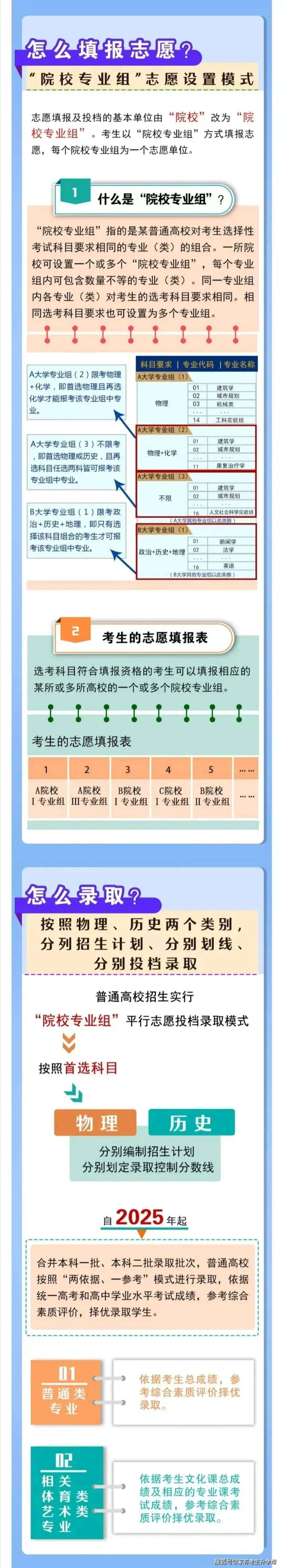 在志愿填报方面,实行“院校专业组”模式,以一所学校加一个专业(组)为一个志愿单位,考生可以先选择院校专业组,再在专业组下选择自己喜爱的若干专业。