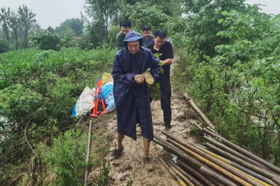 以“为民奋斗,百折不挠”的担当,筑"绝知此事要躬行”的实干担当之梦。瓦南社区的“兵支书”钱存和逵营村的“兵支书”翟居德主动请缨,带领退役军人志愿者和村干部投身防汛抢险和灾后重建一线,展现出过硬的军事素质和良好的组织纪律性。他们冒雨沿堤巡查险情,紧急救援疏散群众,帮助受灾群众抽水排涝,组织防汛清淤村庄消杀,破路挖渠疏通水域,安抚群众情绪构建和谐干群关系……他们曾在火热的军营保家卫国,如今再次挺身而出,勇当“排头兵”,始终站在人民最需要的地方,践行初心使命。尚庄村村党支部书记韩飞是村里的种植大户,受强降雨影响,尚庄村庄稼受灾情况严重,韩飞家里近30万公斤的小麦全部泡水被淹,他无暇顾及自家灾情,从防汛部署开始后,日夜同镇村干部一起坚守在岗位上,田里受淹的小麦仅靠家中老父亲操持。虽对家人心存歉意,但他心里装的是群众的生命安全。大灾面前尽显担当,他舍小家为大家的精神,为受灾群众带去了希望和温暖,成为村民心中一道坚固防线。