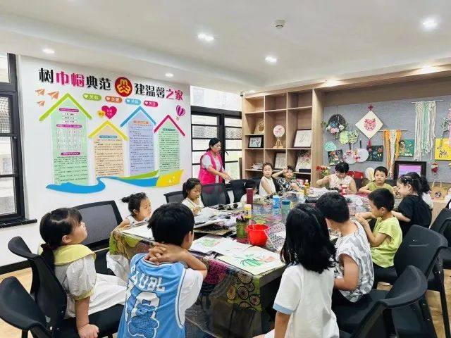 在课程安排上,社区副主任季玲说,除固定的“作业辅导+身体锻炼”外,还涵盖“德智体美劳”五个方面,多角度提升青少年综合素养,切实为居民办实事、解忧愁,“我们的课程安排有很多,因为是脱离课堂,会给孩子们上一些防诈骗的知识,让孩子实地看一下消防安全,会在园区找一个安静的地方带着孩子们晨读,我们这有大学生志愿者,他们每天会抽出时间辅导孩子写作业,还有手工绘画、烘焙课、硬笔书法课……根据‘共享妈妈’的时间,排出下一星期的课堂表,通过‘托、管、学’相结合的方式,让孩子们学有所乐,愉快地度过一个暑假。”