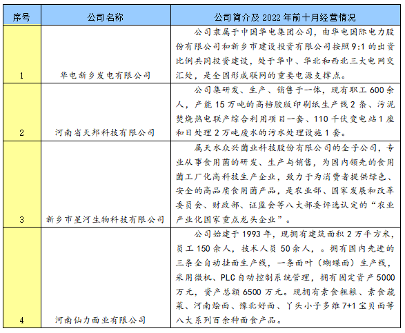 辉县市的主要重点龙头企业涉及的领域包括制造业、能源产业、生物科技产业等。华电新乡发电有限公司主要从事发电业务,处于华中、华北和西北三大电网交汇处,是全国形成联网的重要电源支撑点;河南省天邦科技有限公司主要从事高档胶版印刷纸、污泥焚烧热电联产综合利用、污水处理等业务;新乡市星河生物科技有限公司主要从事食用菌的研发、生产与销售;河南仙力面业有限公司主要从事面食产品的生产与销售。