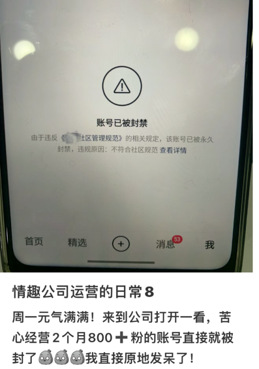 对需要做内容运营的情趣用品品牌而言,限流、删帖、封号都是日常,哪怕正文没有敏感词,而评论区有用户讨论了性相关的大尺度内容,账号也可能会被平台封禁。