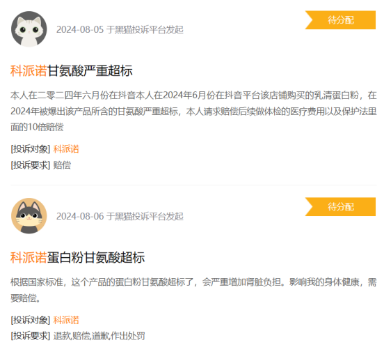 网红蛋白粉科派诺被曝超标使用甘氨酸,公司致歉后又删除