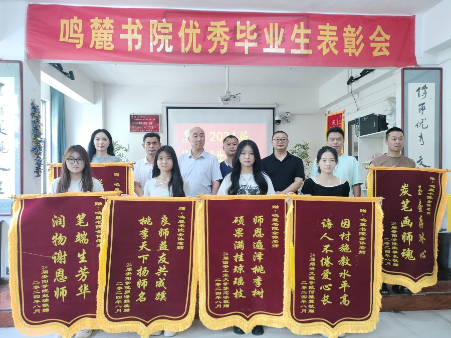 8月10日上午,鹿邑鸣麓书院召开优秀毕业生表彰会,回顾总结了2024年度书法艺考工作,祝贺6名同学考上理想大学继续深造。鸣麓书院院长谭雪松,河南省名校长、河南省书法教育示范校长、鹿邑县硬笔书协副主席蒋振华,县作家协会副主席李现理,鹿邑县宋朝皇赐“银牌张氏”宗族理事长、第21世孙张斌和副理事长张冰及在读书法艺术生参加会议。