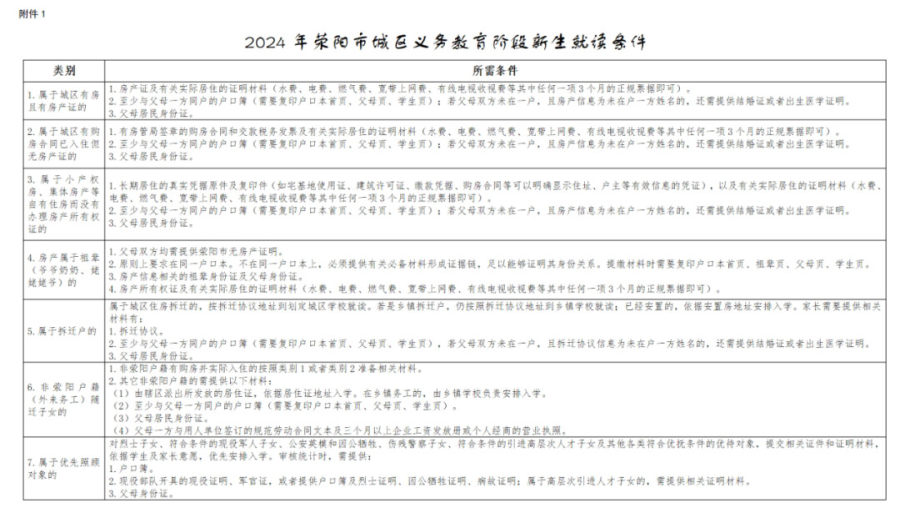 荥阳市2024年义务教育阶段及学前教育阶段招生工作报名须知及政策解读