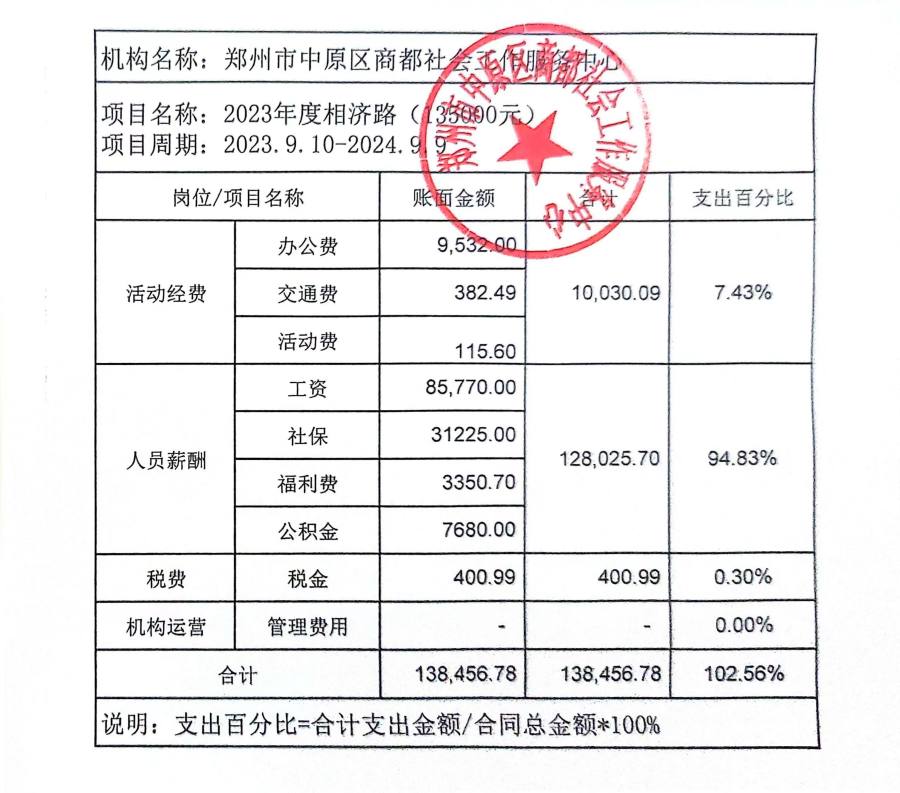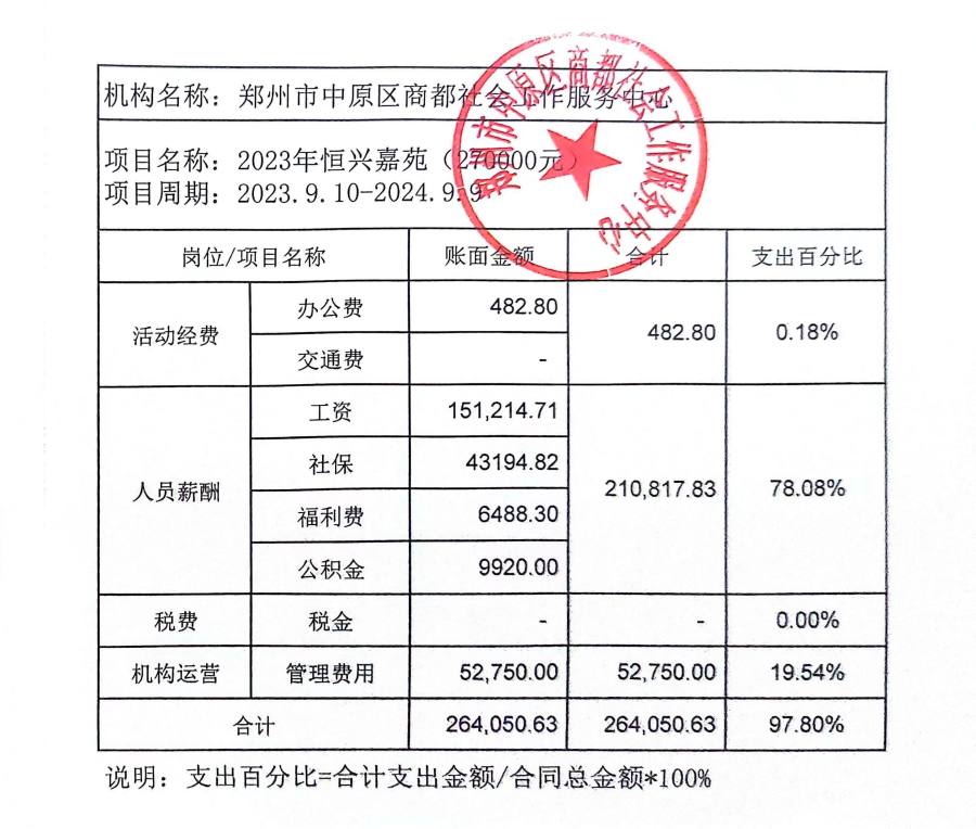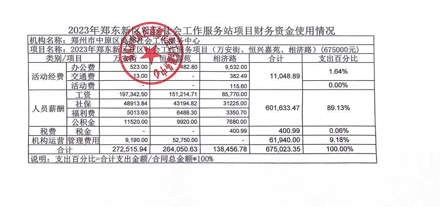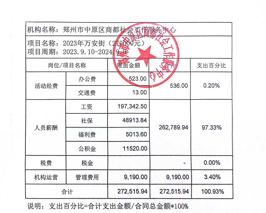 2023年郑东新区购买社会工作服务项目(2023.9.10-2024.9.9)年度资金使用情况公示(万安街、恒兴嘉苑、相济路)
