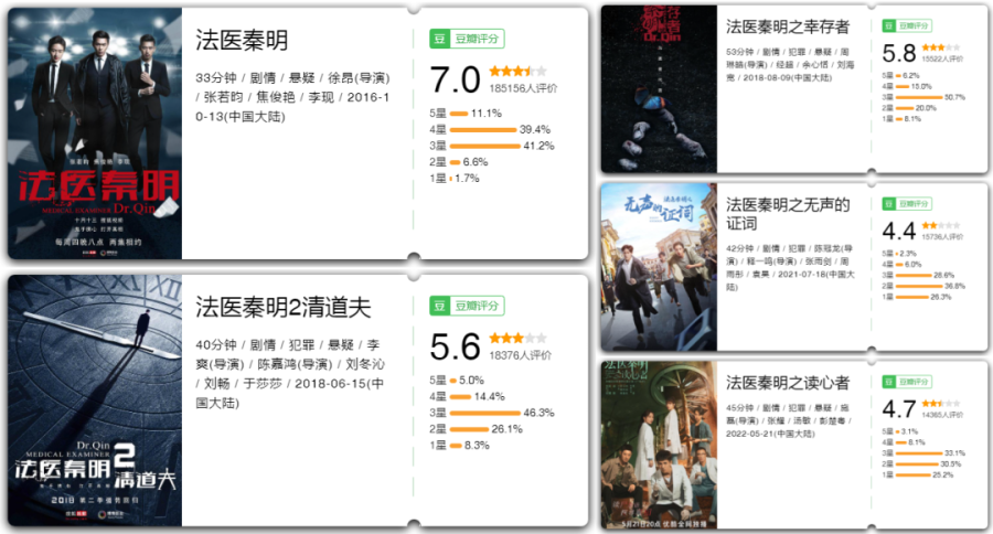 版权因素无疑是国产剧在做系列化时的一大烦恼。《法医秦明》系列版权在不同平台的争抢下,几乎每个平台都拍摄过一个版本,可惜大部分观众只记得最早也是口碑最好的张若昀版;《九州》系列小说这样庞大世界观下多作品的IP,影视剧版本对观众的号召力不够强,也与版权分散、不同影视公司各做各的有莫大关系。