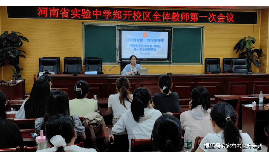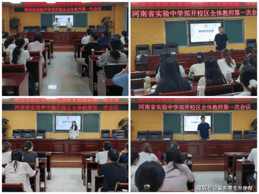 为共铸实验教育梦,以崭新蓬勃的姿态和饱满激昂的热情迎接新同学、新学期,8月26日上午,郑开校区在报告厅召开河南省实验中学郑开校区第一次全体教师会议,秉承省实验中学“异想天开,脚踏实地”的校训,按照“科技+学术”型一流中学的办学定位,明确校区发展目标,优化教育教学体系,加强教育教学及校区管理。