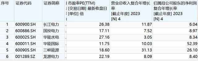 对比估值看,国投电力PE为17倍,远低于长江电力和华能水电的26倍,主要因素是主营业务除水电外,还有毛利率偏低的火电,而前两家几乎均为水电业务。华能国际在6家龙头中估值最低,仅仅11.7倍,也要低于三峡能源的18.6倍、龙源电力的22倍。