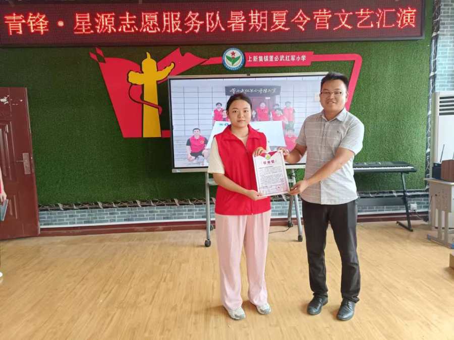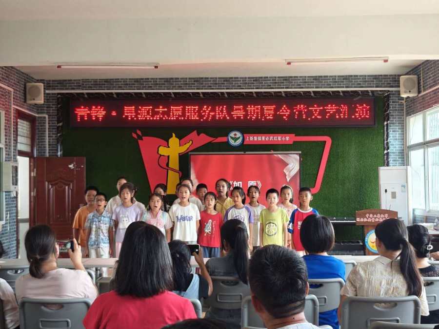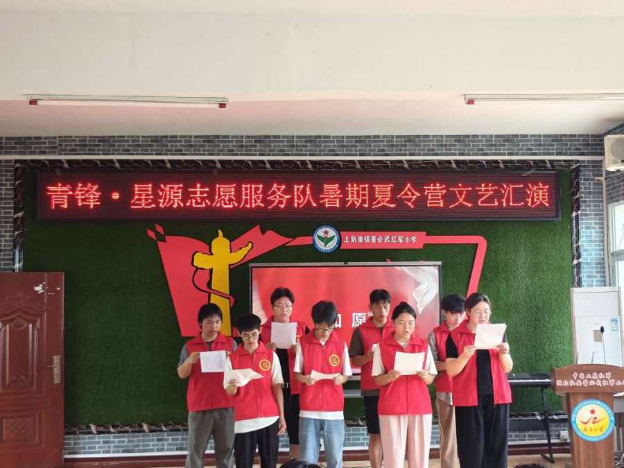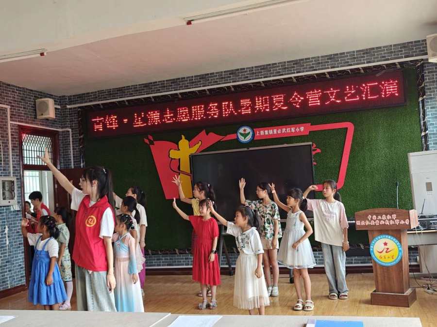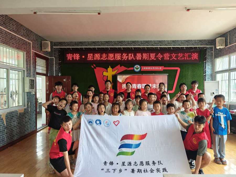 2024年7月18日,青锋·星源志愿服务队完成了为期十天的暑期支教活动,为了汇报、展示暑期支教教学成果,同时和小朋友们做最后的道别,团队在湖北省黄冈市红安县董必武红军小学开展了一次暑期夏令营文艺汇演。活动伊始,校长致辞,对同学们殷殷嘱托;支教代表发言,总结暑期支教的点点滴滴。随后,小朋友们齐唱《我和我的祖国》,表演手指舞,大家都十分努力认真。最后,志愿者和小朋友们一起合影留念,记录下这珍贵的一刻,孩子们都非常开心。支教情深,学子意浓,这将成为小朋友和志愿者们最宝贵的经历。