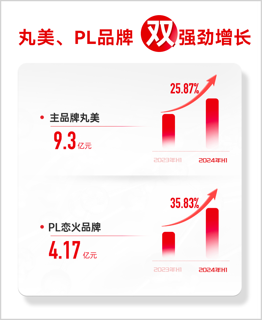 上半年,主品牌丸美和第二引擎恋火“双强劲增长”,丸美品牌斩获营收9.3亿元,同比增加25.87%,营收占比68.77%;PL恋火营收达到4.17亿元,同比增长35.83%,营收占比为30.84%。