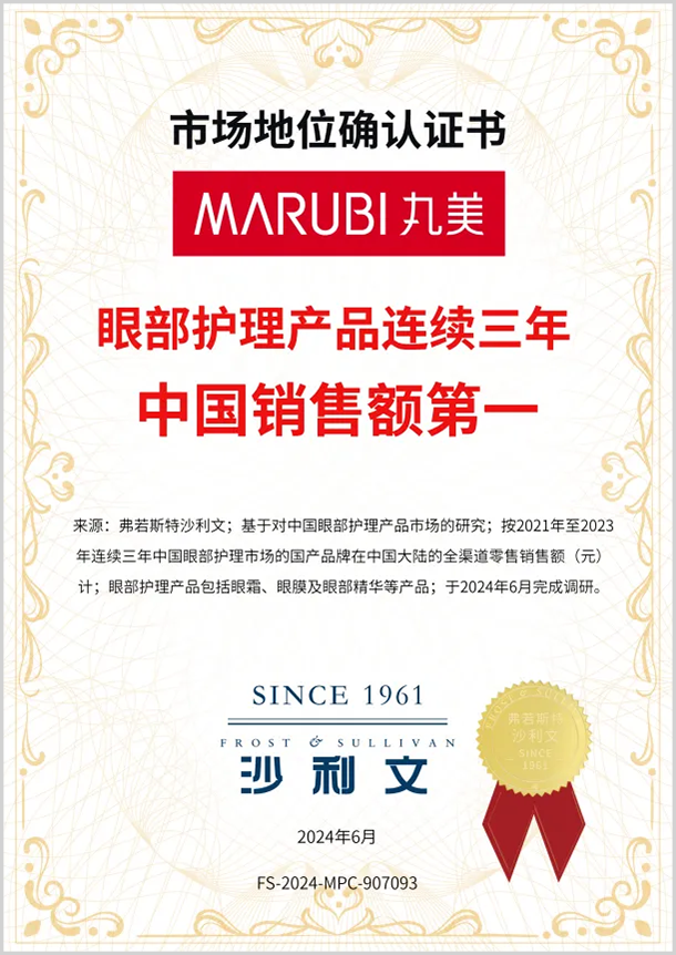 得益于大单品的强劲表现,丸美获得弗诺斯特沙利文眼部护理产品连续三年中国销售额第一的专业认证,这是沙利文通过对眼部护理市场调研后,为丸美市场地位的“专业背书”。