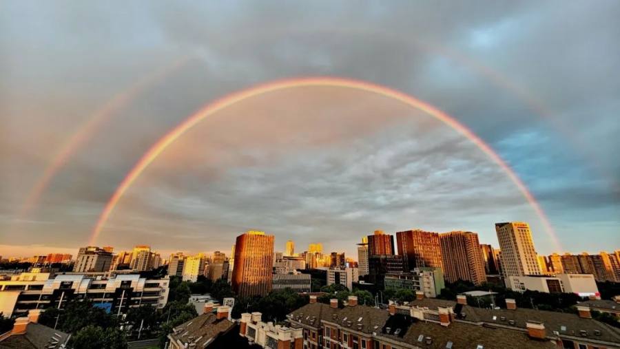 郑州这几日的天气简直美到极致。天空澄澈如宝石,云朵如棉絮般轻盈飘荡,或聚或散,变幻出万千姿态。日出时分,金色的阳光洒遍城市的每一个角落,唤醒了沉睡的大地,为高楼大厦披上一层璀璨的外衣。日落之际,晚霞如绚丽的画卷铺满天空,红的、橙的、紫的色彩交织在一起,让人沉醉其中,雨后的彩虹优雅地横跨天际,给我们带来了一场晚霞与彩虹的视觉盛宴。在这美好的天气里,仿佛整个城市都沉浸在一种宁静而又热烈的氛围中,令人心旷神怡,流连忘返。