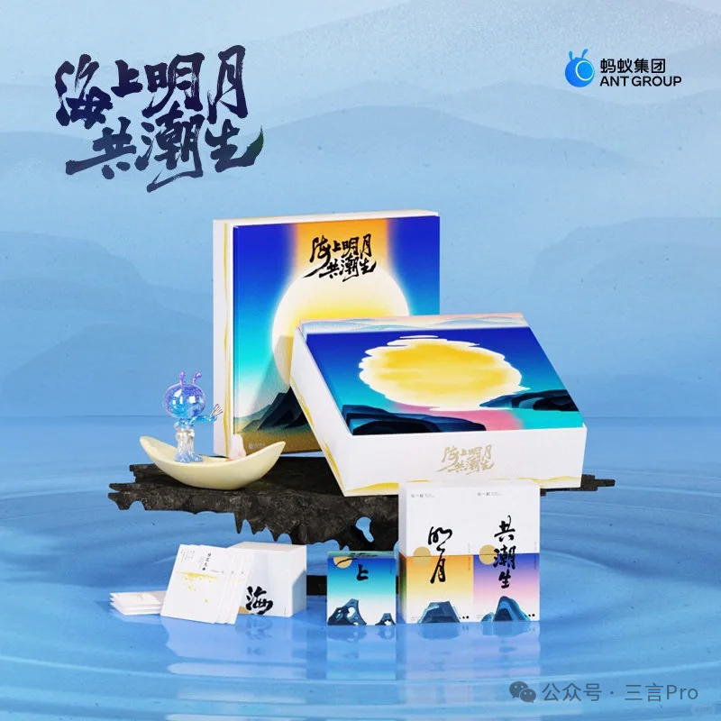 蚂蚁:主题海上明月共潮生,礼盒有6枚月饼,6袋茶包,1个公仔。