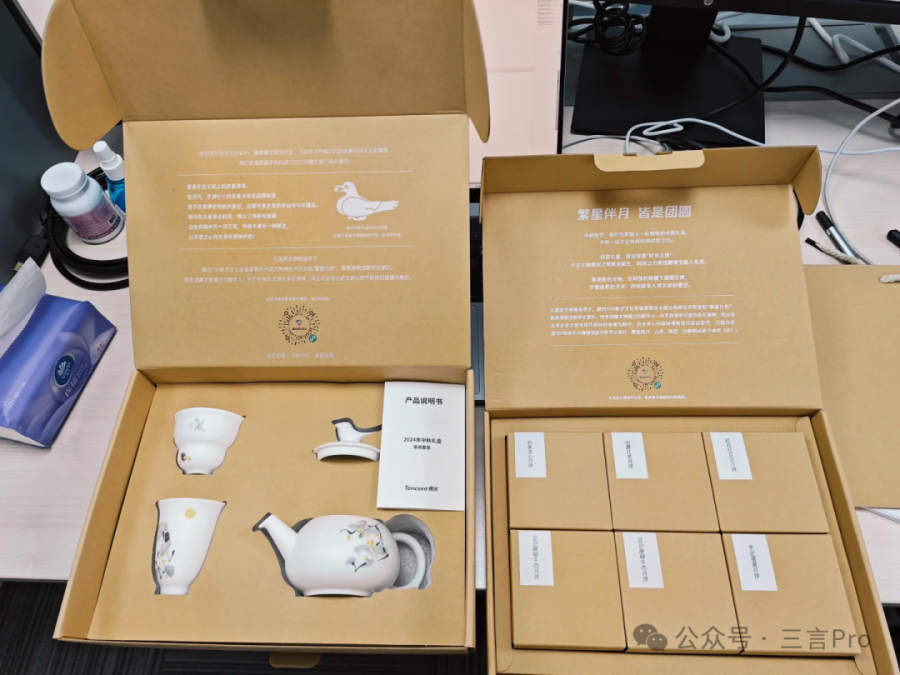 腾讯今年有两种规格,一套是香薰套装,一套是茶具套装。