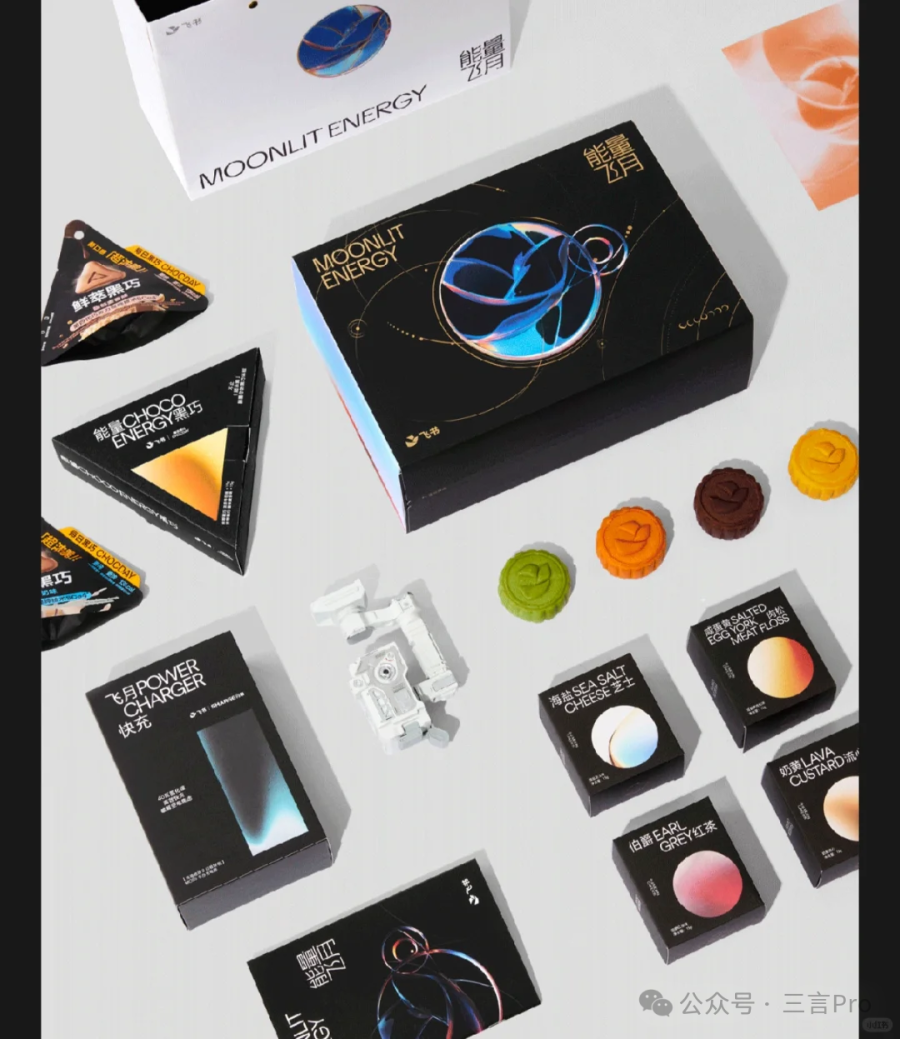 飞书礼盒有一个闪极与《流浪地球2》联名的MOSS手办充电器,就是图中白色手办。其他还有黑巧和月饼。