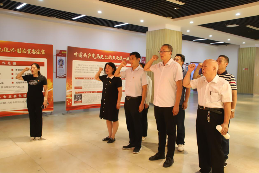 集体学习研讨结束后,党员们集中缴纳了九月份党费。随后,全体人员前往中原智谷,参观中原智谷非公企业党建馆。通过聆听讲解,参观党史党建展品,支部党员们追忆峥嵘岁月,汲取奋进力量,进一步筑牢了为侨联事业继续奋斗的思想根基。在宣誓墙前,全体党员重温入党誓词。
