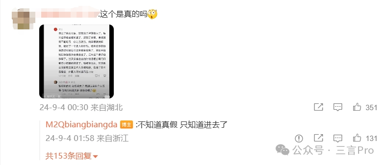 她还在评论区回复其他网友关于沫沫失踪真相的截图时表示,“不知道真假 只知道进去了”。