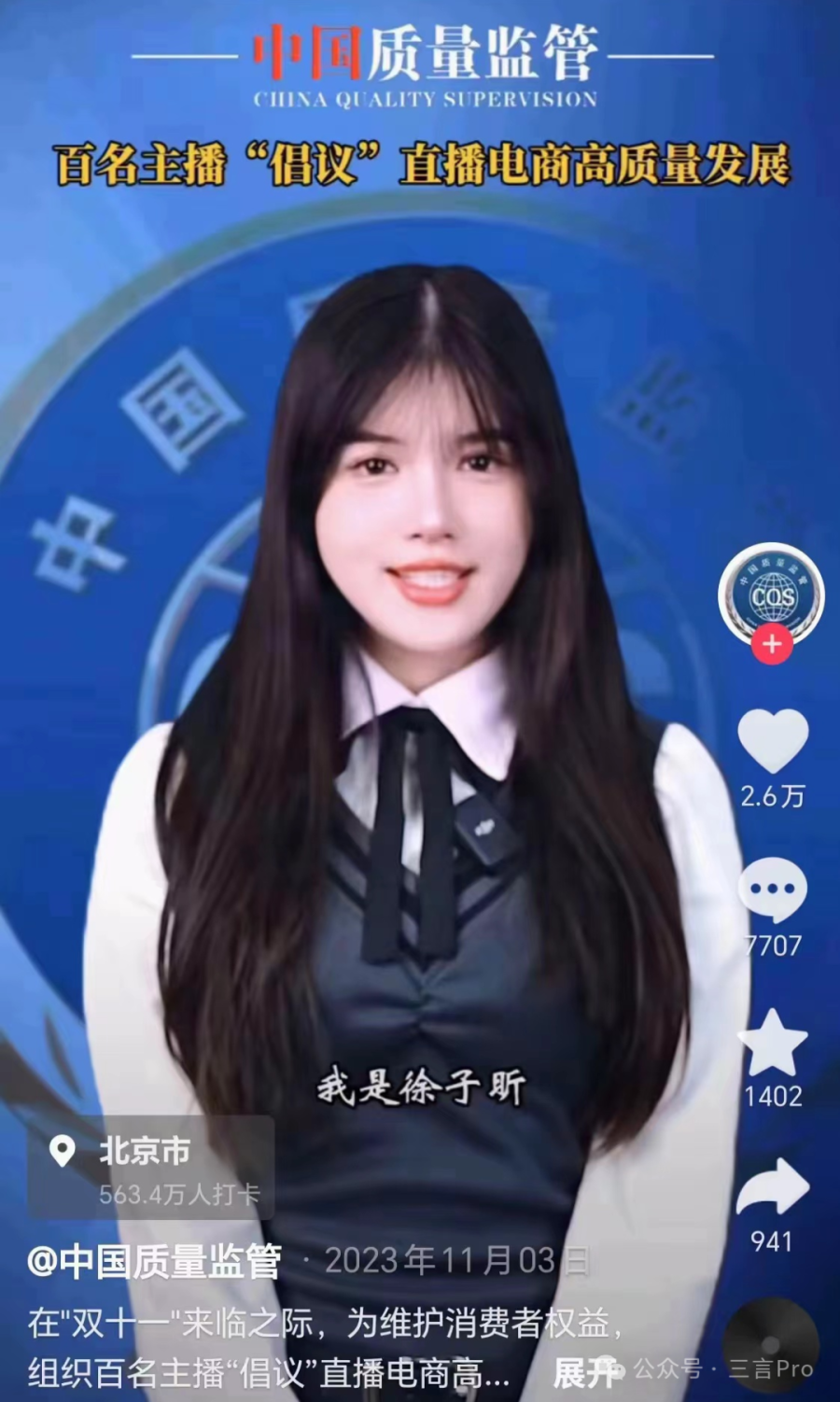 三言注意到,去年11月,曾有多名主播录制视频,“倡议”直播电商高质量发展。当时的视频中,三只羊的主播沫沫曾表示自己叫徐子昕。