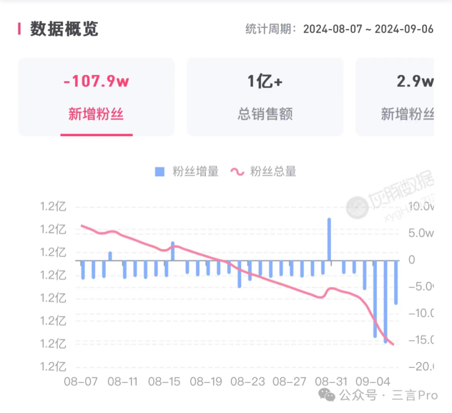 据第三方数据显示,“疯狂小杨哥”账号自9月1日起,便一直处于掉粉状态。